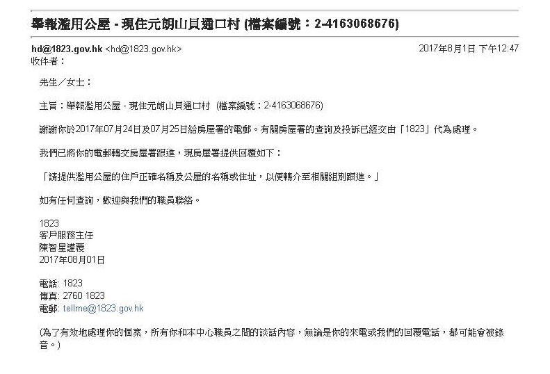 2017年08月03日 1823回覆元朗地政署跟進